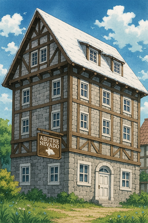 O grupo foi direto até a estalagem recomendada por um dos espiões de Arlon que havia explorado a cidade ao mando do seu rei e, ao menos nesta, encontraram um ambiente mais convidativo. O “Abutre Nevado” era uma estalagem de quatro andares, construída com pedras cinzas e vigas de madeira aparentes e com um telhado de telhas que haviam sido pintadas de branco assim como sua porta e suas janelas.