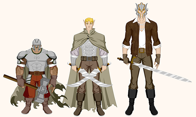 Como o “Tijolo” não deve ficar pronto tão cedo resolvi “brincar” um pouco no Fábrica de Heróis e desenhá-los como eu os descrevo no prequel. Como poderás notar na ilustração abaixo, há pequenas diferenças entre o visual deles no prequel e em “O Retorno”, sendo que as maiores são o fato de, na ilustração, o Pedr portar um martelo (em “O Retorno” ele usa um machado) e o Br’no estar usando duas espadas (em “O Retorno” ele carrega basicamente um arco e flecha e é apresentado como “o arqueiro”).