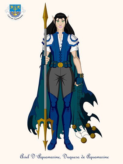 Mas isso ainda assim parecia pouco para mim, uma casa de nobres geralmente tem um líder, né? E aí veio a ideia de criar a personagem dessa postagem: Ariel D’Aquamarine, Duquesa de Aquamarine e a melhor amiga da Ardriel em Noritvy.