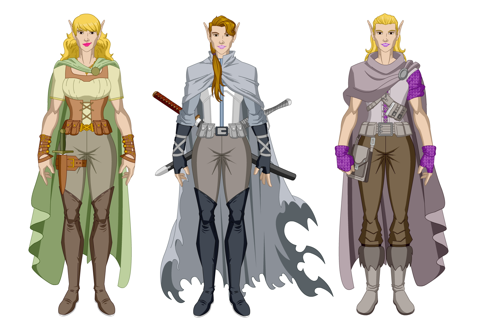 Um cinto de couro de cor marrom clara e fivela dourada apertava sua cintura, com vários bolsos onde ela carregava ferramentas e outros itens que lhe poderiam ser úteis. Sobre tudo isso, uma capa verde ondulava, presa por um broche verde musgo.