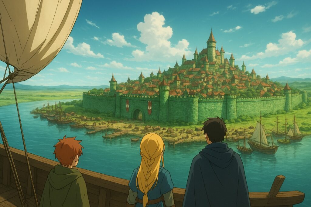 Uma importante cidade comercial e militar de Arlon quase na fronteira deste com o Reino de Erdan, situada na grande campina verde, à beira do Grande Rio, ao ser vista de longe, faz jus ao seu apelido: a cidade esmeralda.